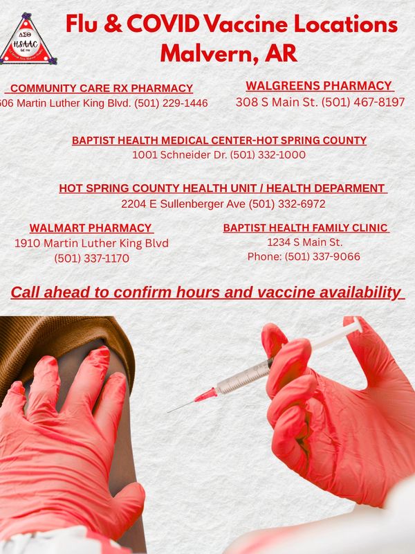 #DeltaSigmaTheta #HSAACDST #HealthAndWellness #CommunityCare #HotSprings #Malvern #Arkadelphia #FluVaccine #CovidVaccine