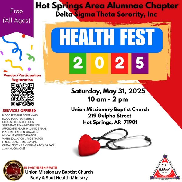 The Hot Springs Area Alumnae Chapter of Delta Sigma Theta Sorority, Inc. hosted a HEALTH FEST 2025 in collaboration with Union Missionary Baptist Church— a dynamic community health and wellness event.